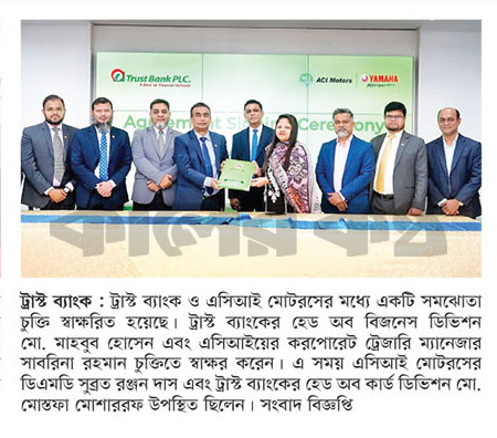 ট্রাস্ট ব্যাংক ও এসিআই মোটরসের মধ্যে একটি সমঝোতা চুক্তি স্বাক্ষরিত হয়েছে