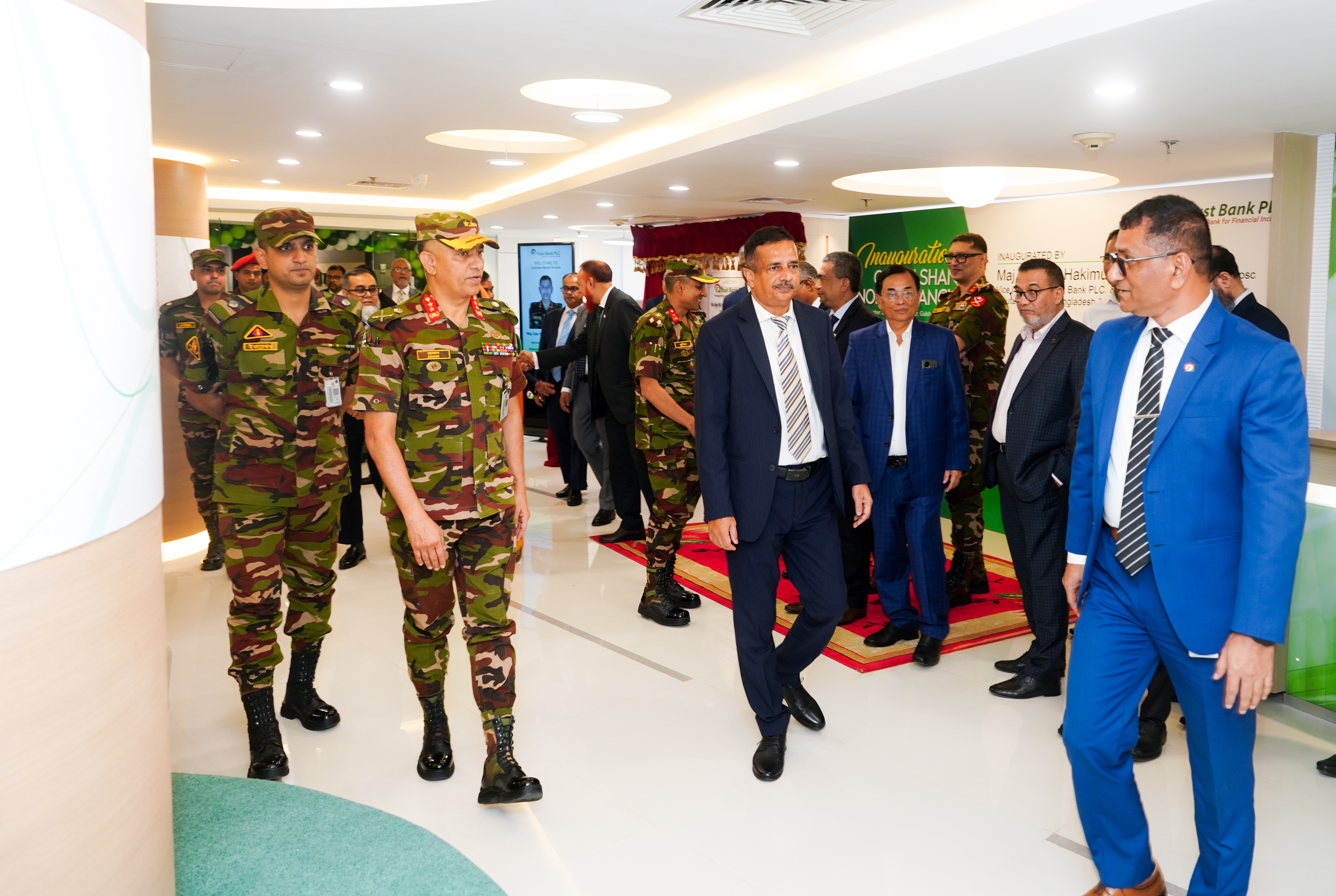 The branch was inaugurated by Major General Md. Hakimuzzaman, SGP, ndc, awfc, psc, Vice Chairman of the bank and Adjutant General of Bangladesh Army. The ceremony was attended by Mr. Ahsan Zaman Chowdhury, Managing Director & CEO of Trust Bank PLC, along with members of Board of Directors, other senior officials of the bank, officials from the Bangladesh Army, and several valued customers.