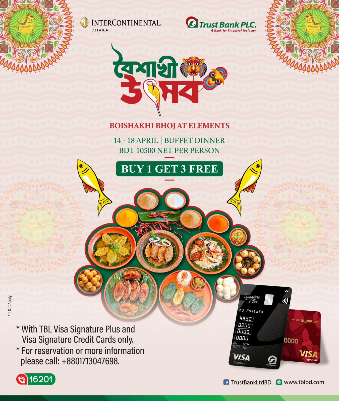 Indulge in an exquisite Boishakhi Dinner Buffet at Elements, InterContinental Dhaka. Take advantage of our premium Buy 1 Get 3 Free offer for a truly festive experience.