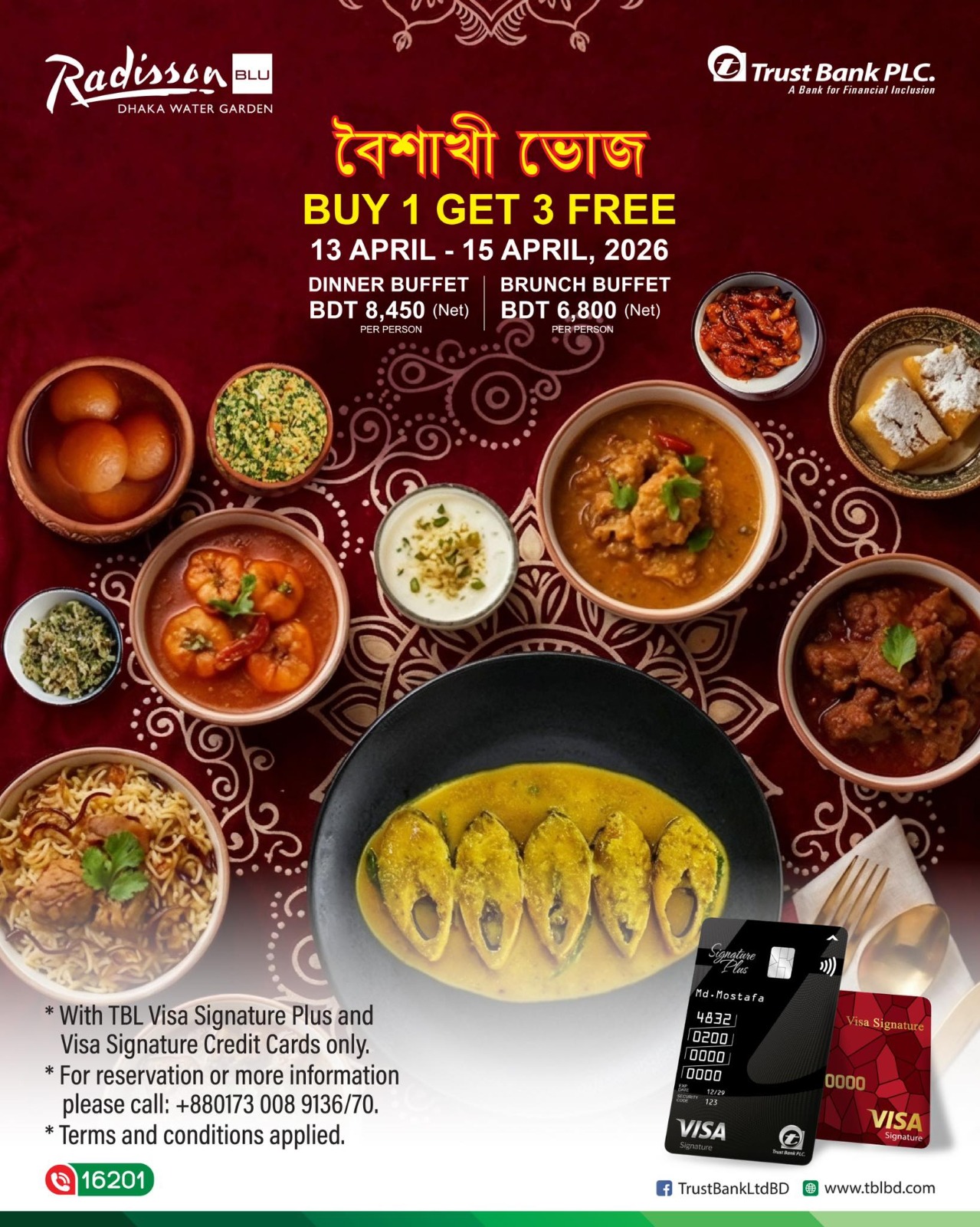Celebrate Pahela Baishakh with a grand feast! Enjoy our exclusive B1G3 offer on Brunch and Dinner buffets at Radisson Blu Dhaka Water Garden